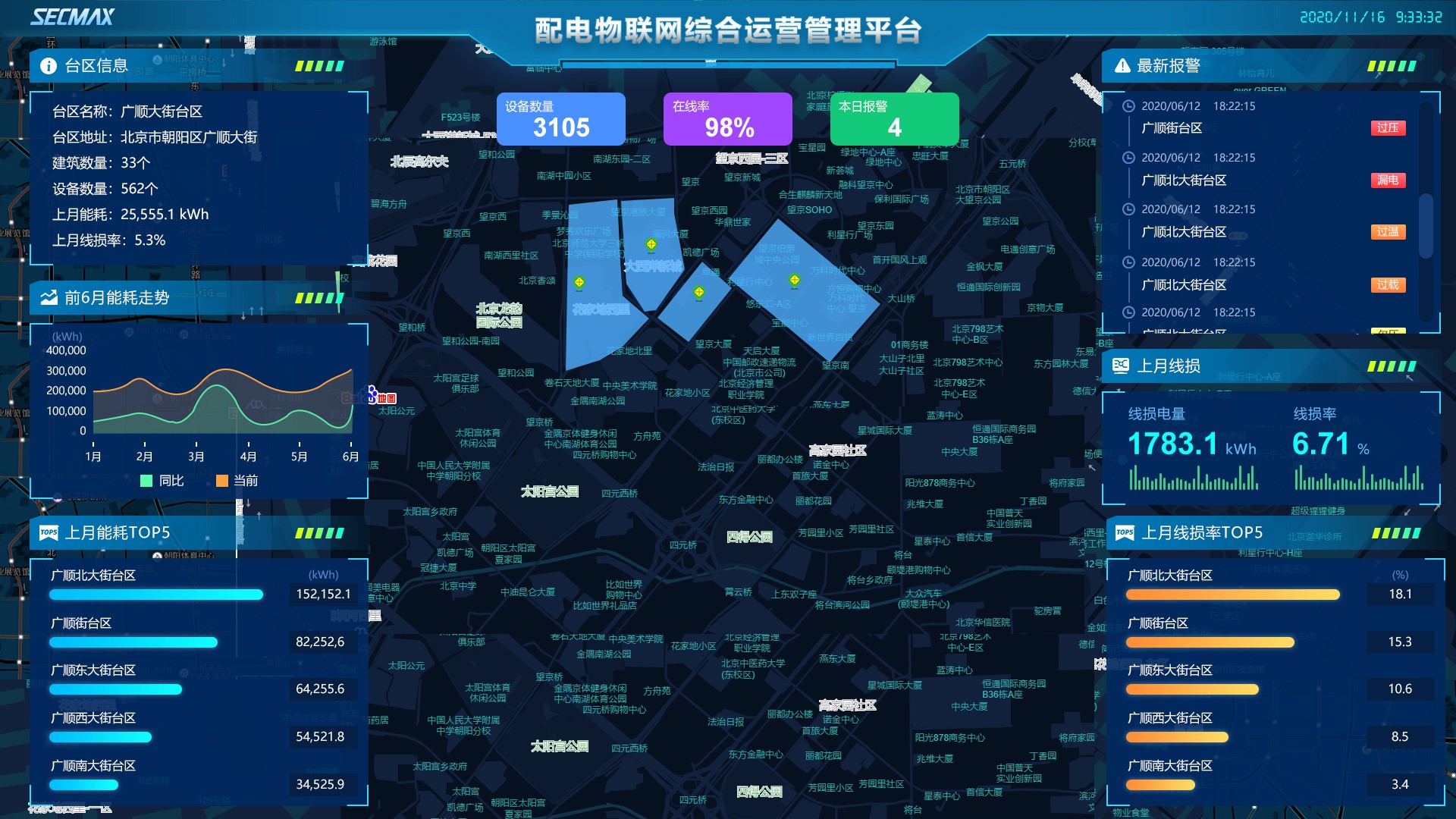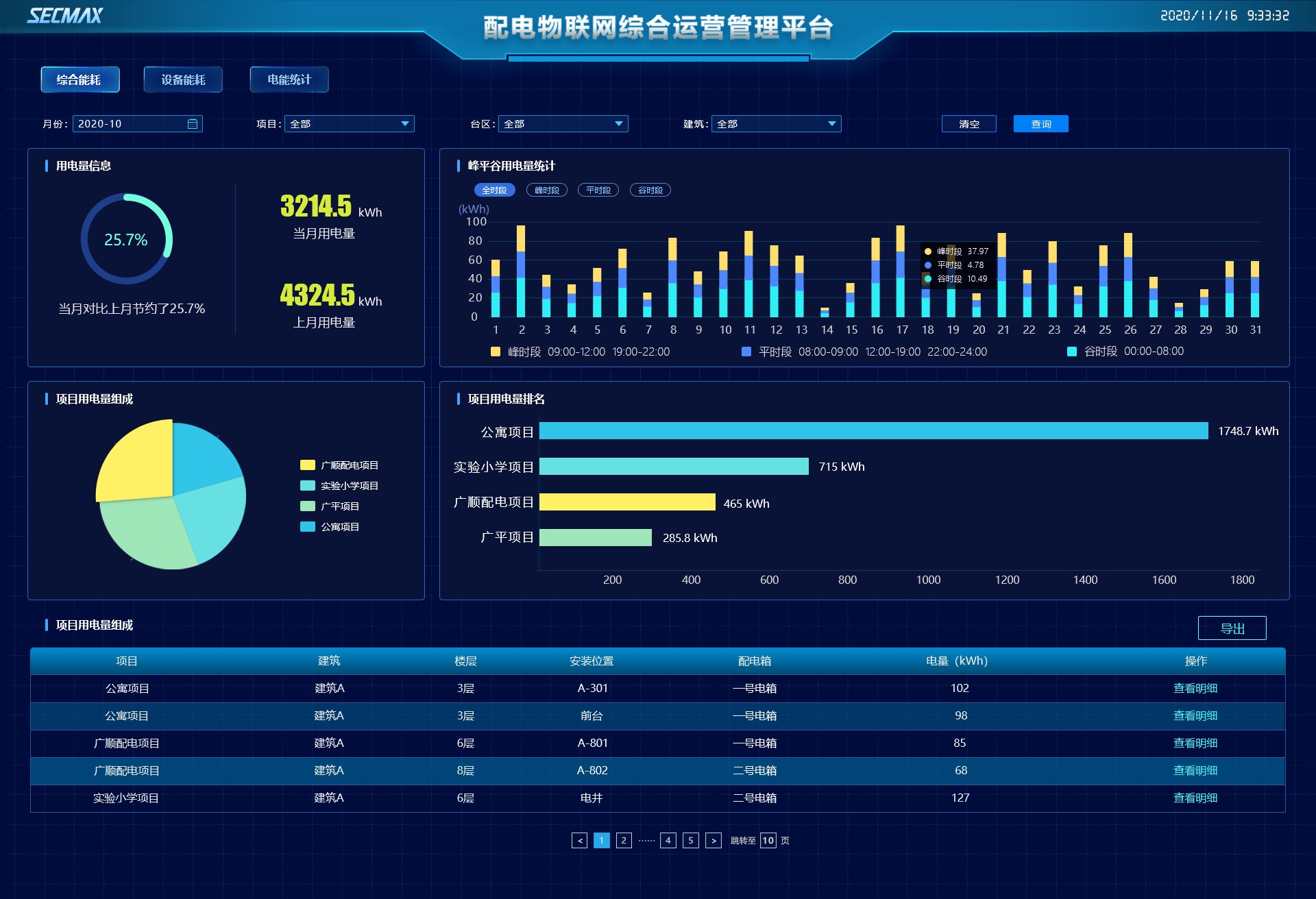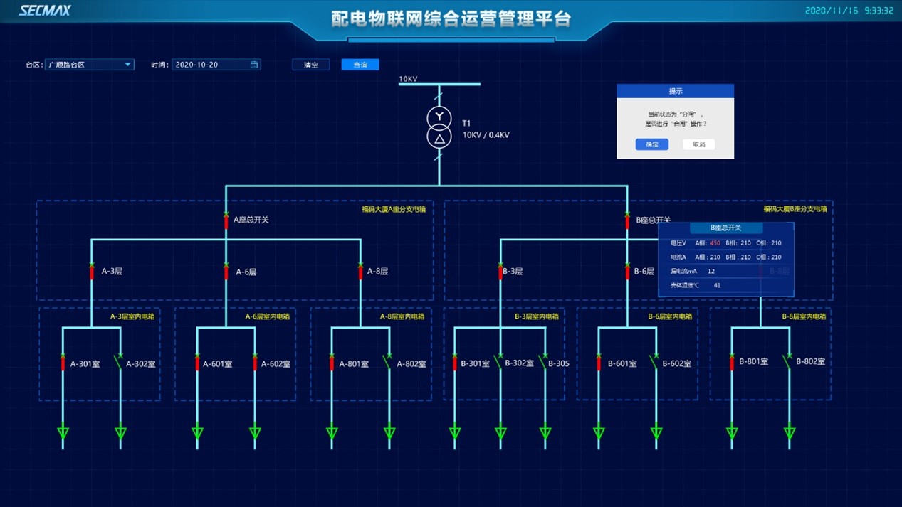 SECMAX 電力物聯網綜合運營管理平臺融合了物聯網、云計算、大數據等技術,通過 SECMAX 系列數字斷路器實現了對用 電線路電氣指標的精準感知與數據的實時采集。