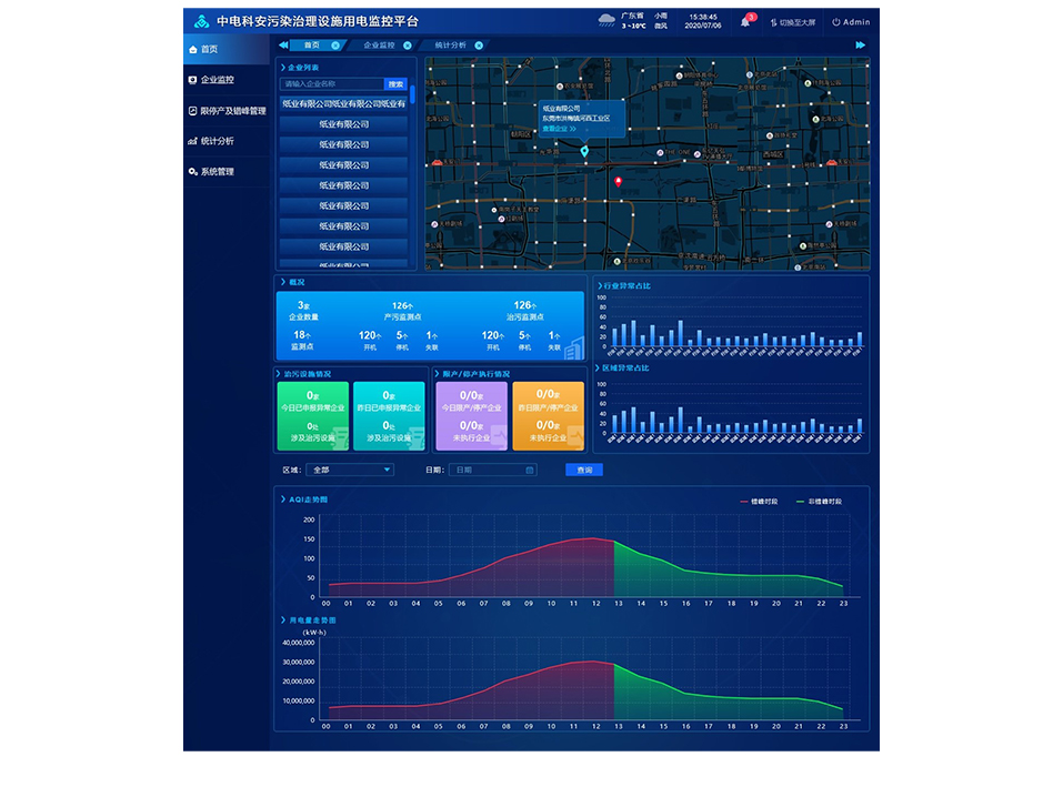 分表計電環保用電監控系統平臺依托創新的智能斷路器等智能終端產品,實時采集企業生產用電數據、環保治理設備用電數據,將環境監管關口從監督企業污染排放前移至監控企業用電量,對轄區內重點企業的產污、治污、排污全過程企業、生產設施、環保治理設施用電量實行24小時監控,確保企業廢氣處理設施正常運行、污染物達標排放。